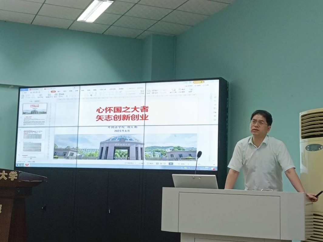 党委副书记胡文勤总结讲话。他首先对各位嘉宾的分享做出了精彩的点评,然后从政策保障与制度安排、实践探索与逆势突围、立足学院与选题参考三个方面,重点介绍了学校和学院鼓励同学们创新创业的奖励资助政策、目前大学生创新创业中容易遇到的主要问题和解决方案以及可供外语专业学生参考的创新创业选题。胡文勤老师在讲话中也穿插了他十余年指导学生团队参加创业比赛和实体孵化的许多典型案例,激励大家向创业榜样们学习。