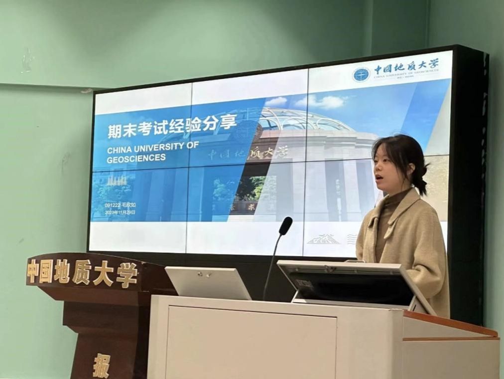 吴悠同学从课程学习与考试、未来方向与目标、平衡学习与生活三个方面进行详细讲解。她提醒同学们要提前了解各门课程的学习内容和考试方法,根据不同的考试内容制定不同的学习计划,并细致入微地讲解各种升学就业的途径及相关要求。