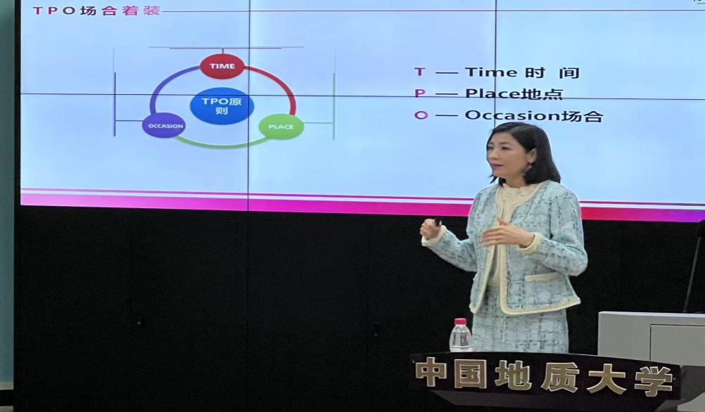 随后,王老师向大家介绍了TPO场合着装法则,详细讲解了在24种不同场合下的着装规则,让同学们深入认识了不同场合下的着装示范。