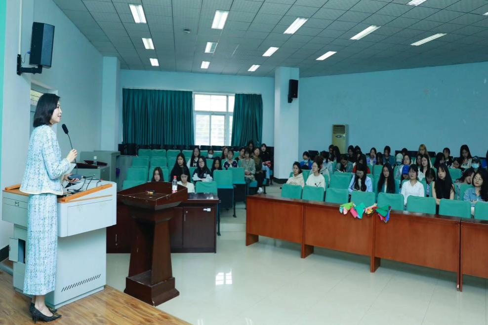 讲座最后,由Beauty Next女生协会的指导老师胡文勤做出总结,除了概括王萍老师的TPO着装法则与服饰穿搭理念外,还积极鼓励同学们对于美的追求,得到了同学们的积极响应。