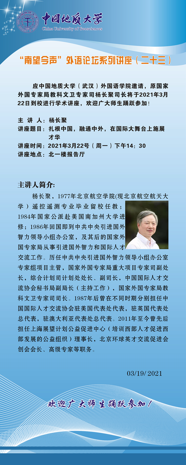 “南望今声”外语论坛系列讲座(二十三)通知