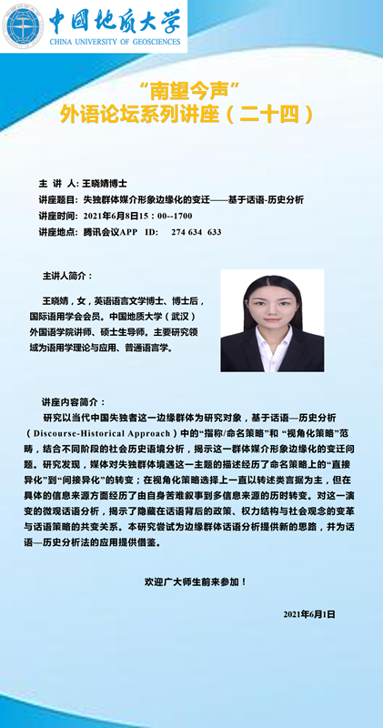 “南望今声”外语论坛系列讲座(二十四)通知