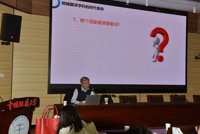 做主题为“以帮助海外受众理解为目标——谈谈中国话语的对外翻译”的讲座。此次讲座由王伟副教授主持,100余名相关专业老师以及研究生参加了本次讲座。