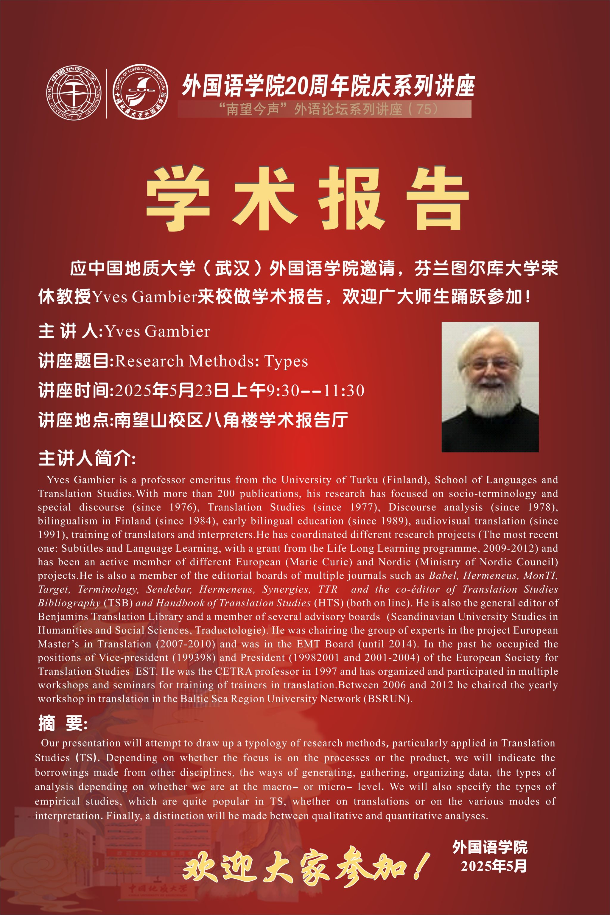 麻豆传媒 二十周年院庆暨“南望今声”外语论坛系列讲座第75期启幕