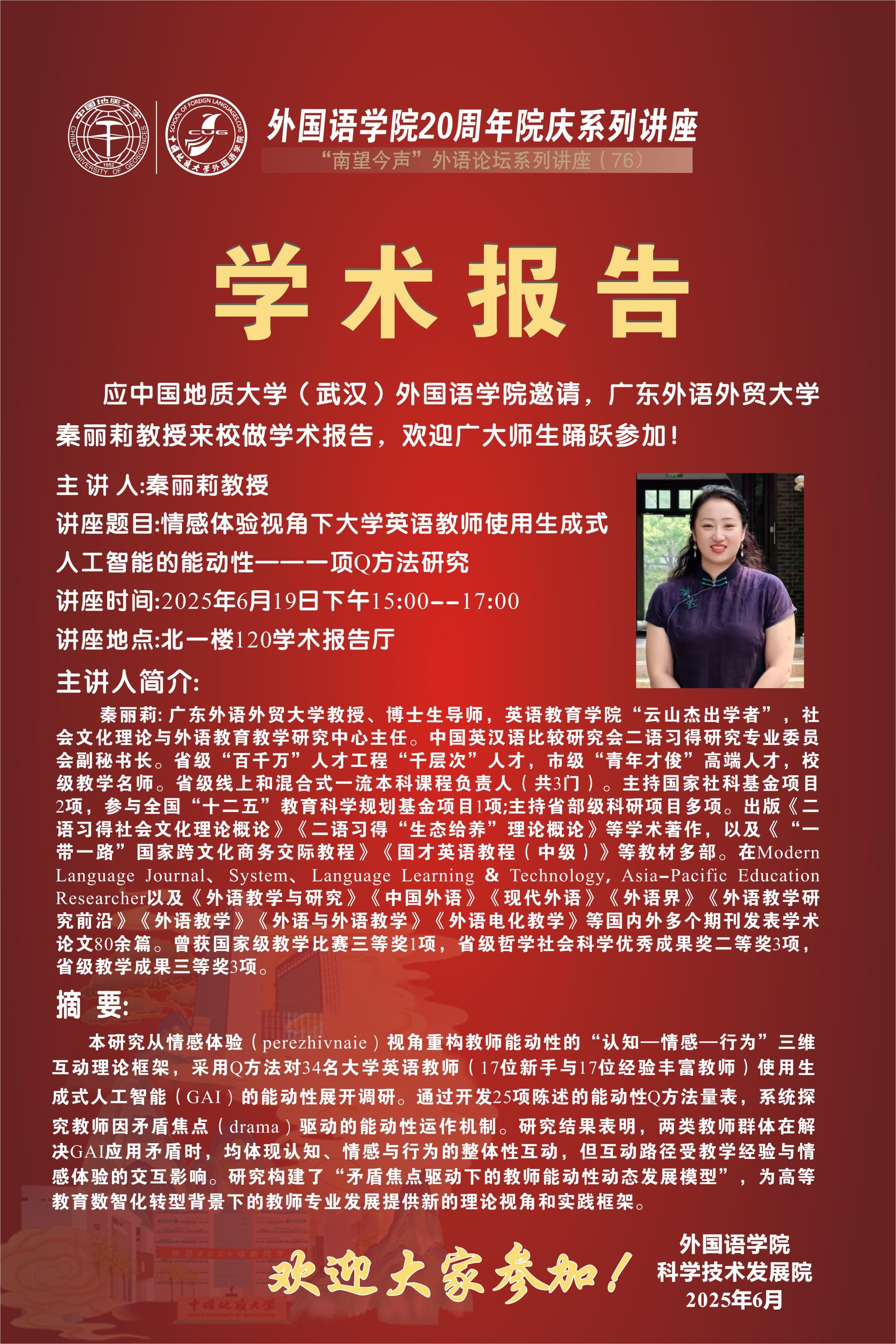 麻豆传媒 院庆20周年暨“南望今声”外语论坛系列讲座(76)通知