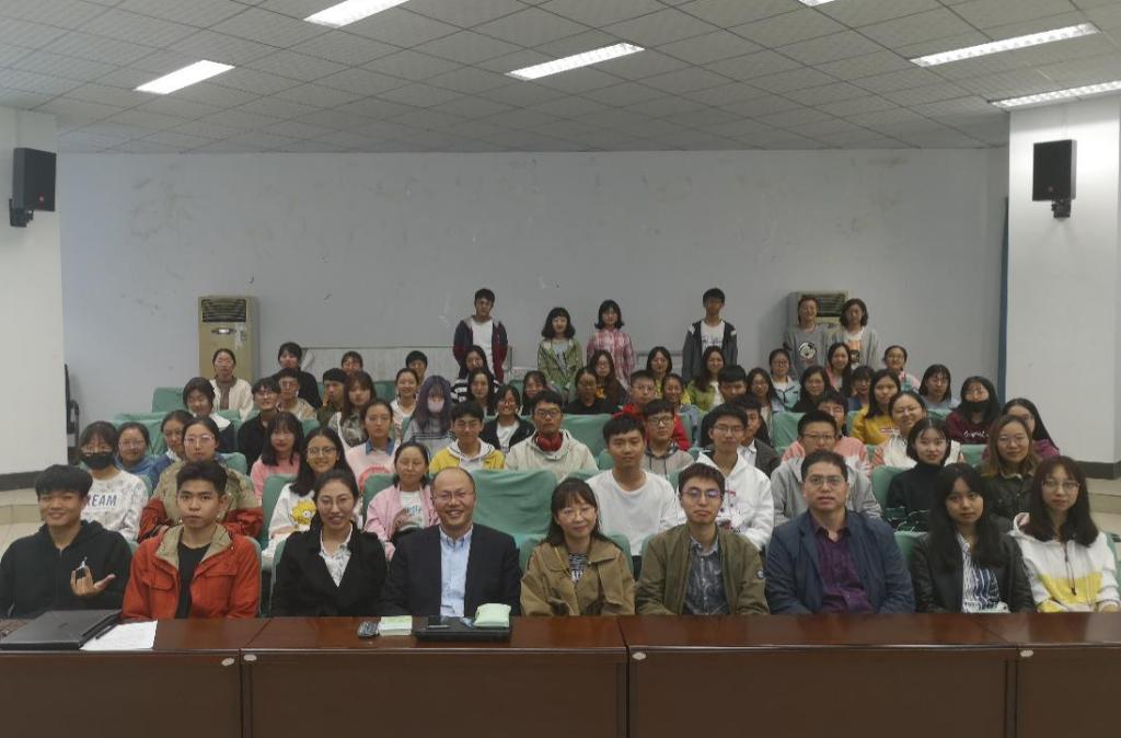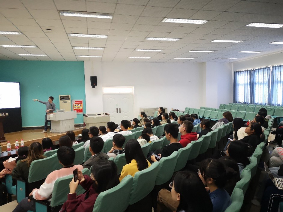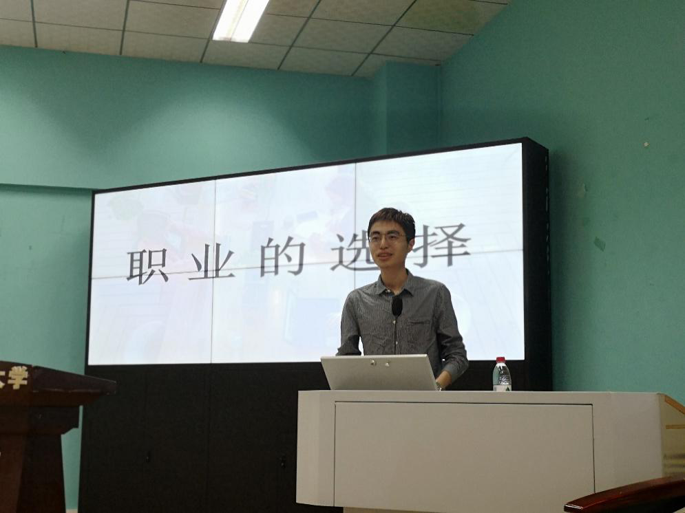 各个年级的同学陆陆续续来到北一报告厅,当时针指到两点的时候,时隔五年再次回到南望山下的罗松学长准时现身,为外院的学弟学妹们带来了一场激励人心的演讲。