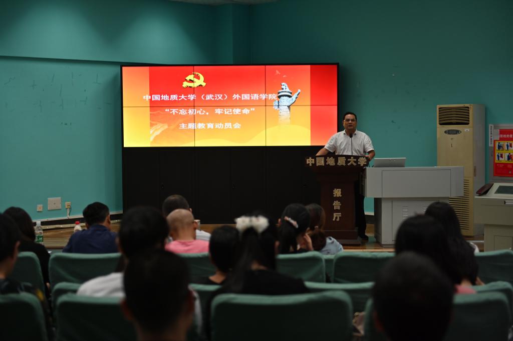 学院党委委员、院长张峻峰结合学院实际,对开展“不忘初心、牢记使命”主题教育做工作安排讲话。他指出,在开展主题教育工作中一定要强调严肃性和认真性。要防止“两张皮”,真正做到“两手抓、两促进”,确保以过硬作风保证主题教育质量。学院各位师生员工要把主题教育和学院中心工作结合起来,利用主题教育契机,进一步提升思想意识和政治站位,加强凝聚力建设和学院学科建设规划,共同行动起来,为学院发展出谋划策,贡献力量。学生工作方面,要充分利用这次主题教育,加快对学生思想教育、心里健康等方面工作的部署,力争解决学生层面存在的实际问题。要进一步提升学生党员的先锋模范作用,提升学生党建工作质量。