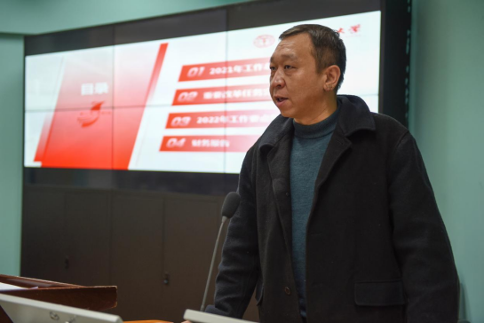 2021年工作报告》。他从党建与思想政治教育、教育教学、科学研究、人才培养和社会服务工作等方面介绍了2021年学院取得的工作成果。还向大会作了学院2021年财务报告。