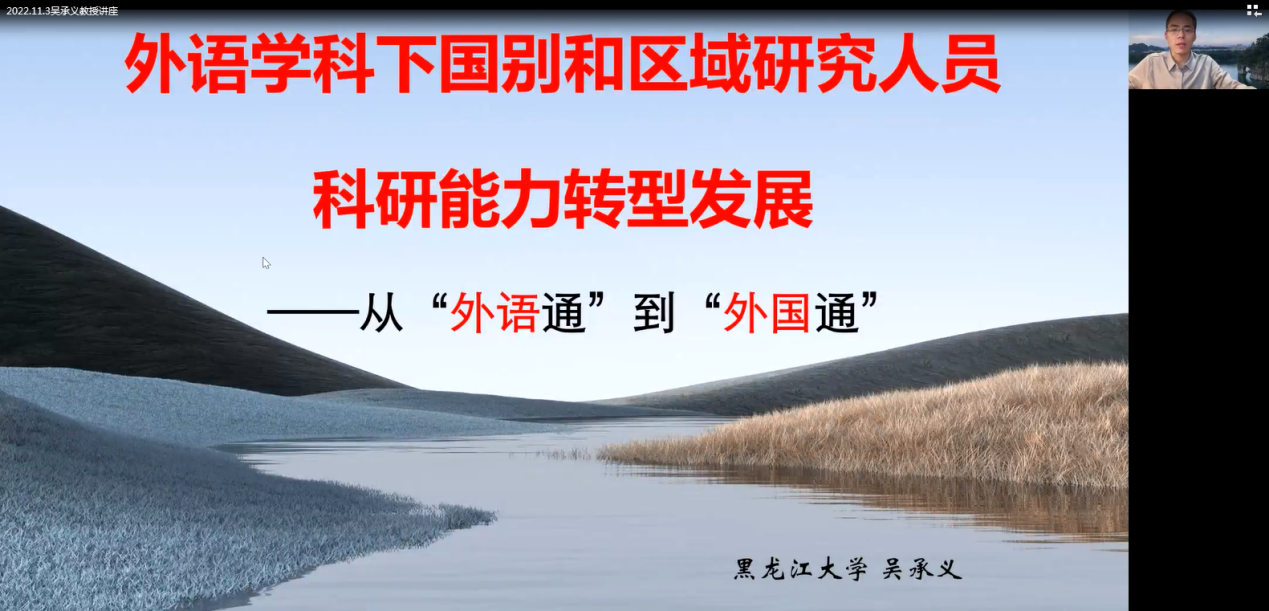(通讯员 王国念)2022年11月3日下午14时30分,作为校庆70周年系列活动之一的“南望今声”外语论坛第40期在线上如期举行。黑龙江大学吴承义教授应邀为麻豆传媒