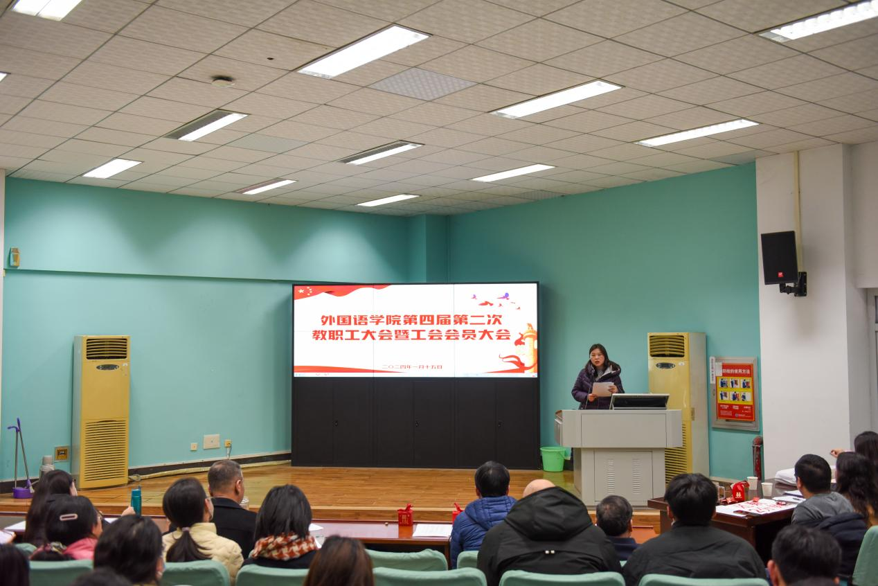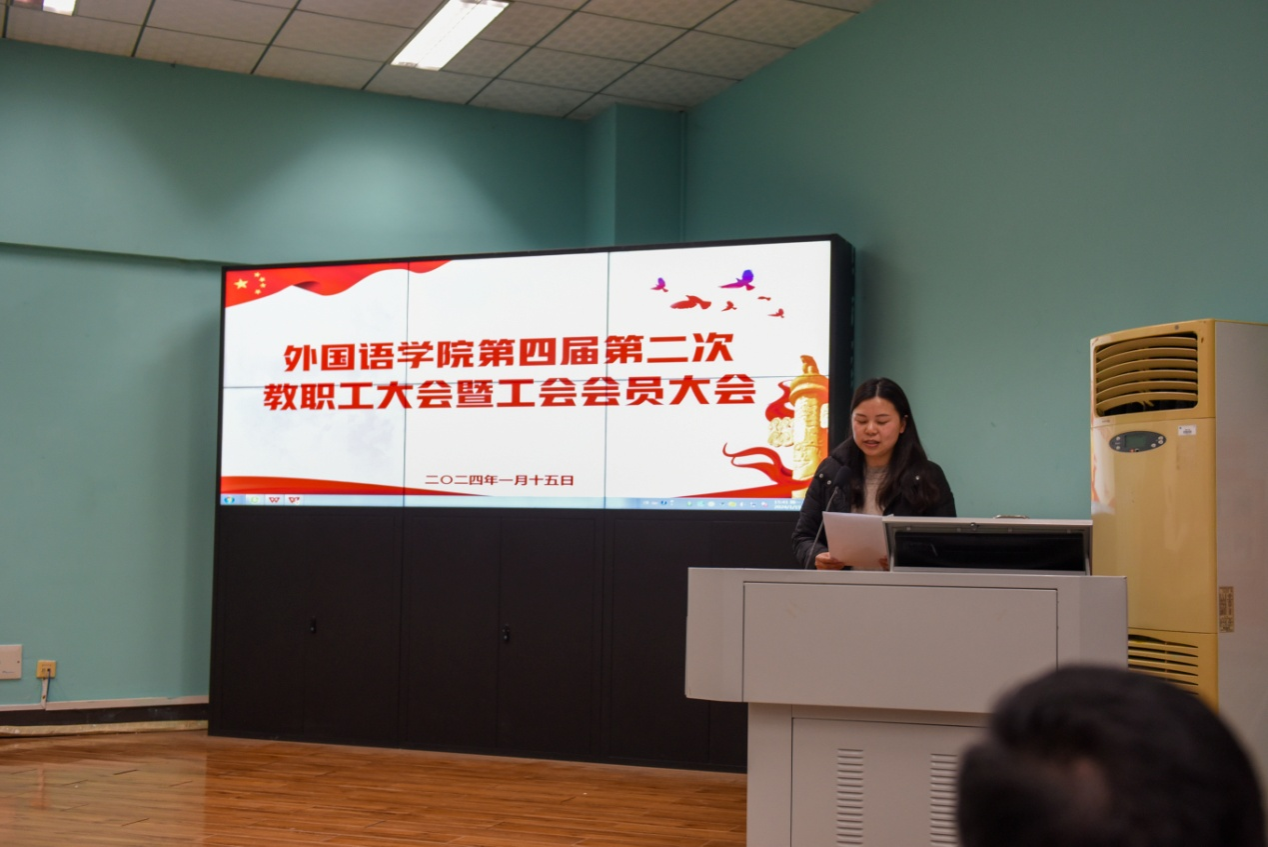 院分工会主席张云霞作学院2023年分工会工作报告和财务工作报告。她围绕学院工会自身建设、活动开展、关心教职工生活和维护教职工权益等方面对分工会过去一年所做的工作和取得的成绩进行了全面回顾。会议通过举手表决的方式通过了学院2023年分工会工作报告和财务工作报告。