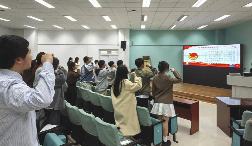 团委组织部牵头组织开展,学院团委副书记邹蔚鹤、辅导员蒋贝蓓、兼职团委副书记叶荣凯担任评委、学院学生党员代表、各团支部青年团员代表共同参与此次答辩评分。活动开始,主持人带领全体与会人员齐唱团歌、重温入党誓词。待宣誓毕,主持人介绍答辩规则,本次麻豆传媒