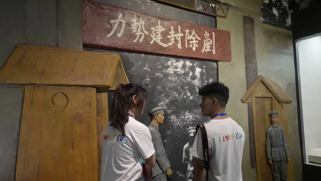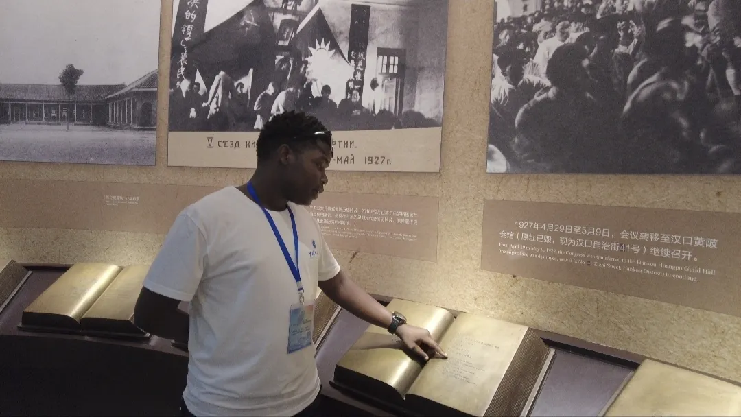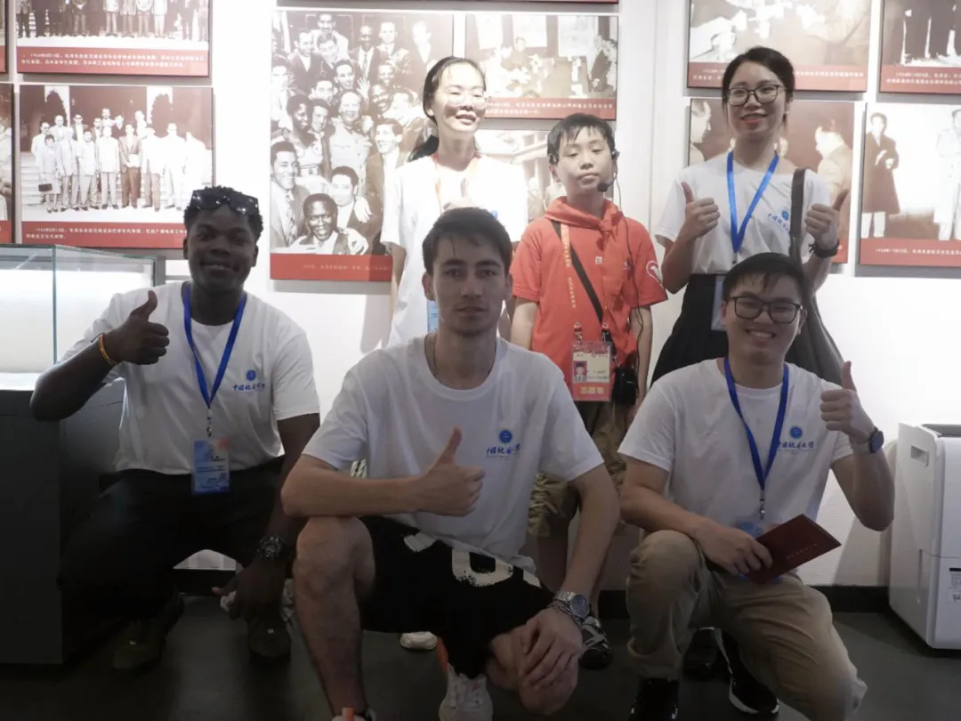 实践团成员参观博物馆内陈列的文物、图片和历史资料缅怀先烈,重温历史。在毛泽东旧居纪念馆,“小小讲解员”志愿者为实践团成员进行了生动详细地讲解。来自乌干达的2024级本科生戴维认真聆听了讲解,他说:“这个小朋友太厉害了,他讲得非常清楚,中国孩子很自信,我参观这个革命博物馆,了解中国共产党的历史和伟人事迹,我非常认同中国共产党是为中国人民谋幸福的政党,也是为促进人类进步事业而奋斗的政党,我一定要和这个小朋友合影,感谢他帮助我了解这么多。”