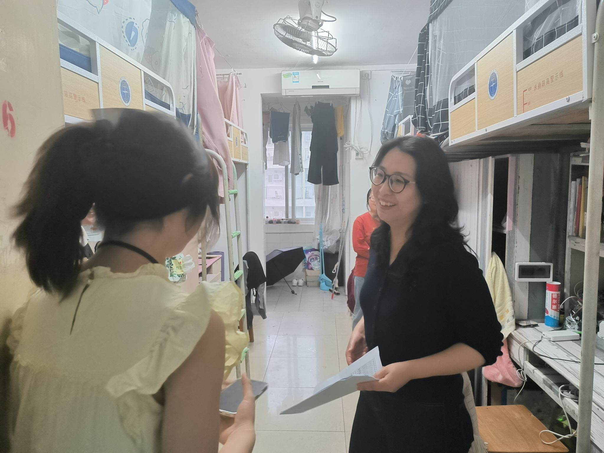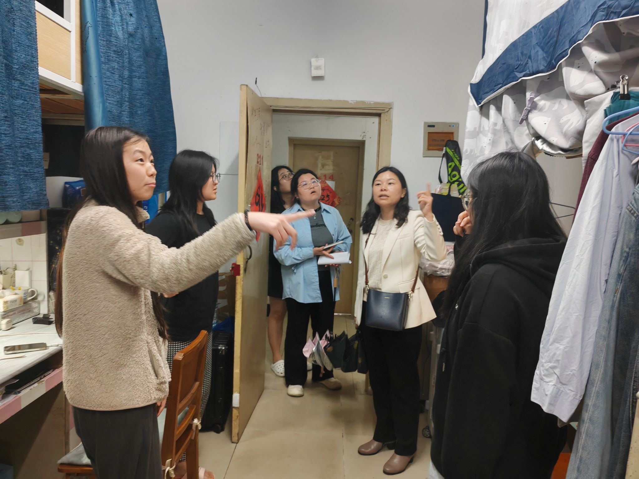 领导班子与全体专兼职辅导员深入学生宿舍,关心关爱学生,强化安全稳定工作,全方位助力学生营造健康、安全、和谐的校园生活氛围。