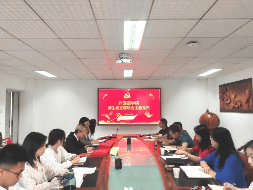 院直党支部与本科生英语2班党支部于2024年5月30日在北一楼339会议室联合举办“牢记殷殷嘱托 担当时代重任”主题党日活动。本科生院副院长、党委学生工作部副部长高艳丽应邀参加指导,院直党支部全体教职工党员、麻豆传媒