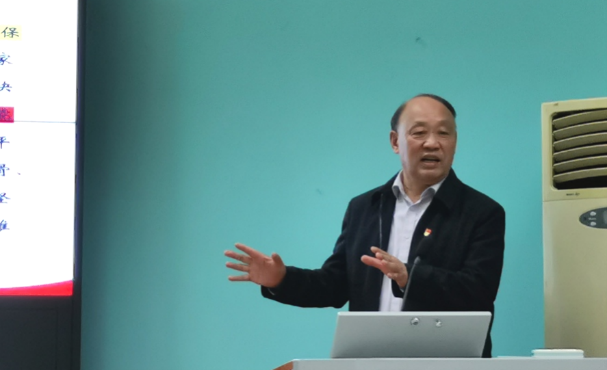 于北一楼报告厅开展学习贯彻习近平新时代中国特色社会主义思想主题教育——学生党员主题教育专题党课暨读书分享活动启动仪式,我校关心下一代工作委员会副主任、“学习贯彻党的二十大精神银龄宣讲团”成员、原学校党委副书记丁振国教授应邀担任本次党课主讲人,院党委书记刘世勇、副书记胡文勤、学生党建辅导员李海涵、全体学生党员和入党积极分子参与此次活动,活动由胡文勤主持。