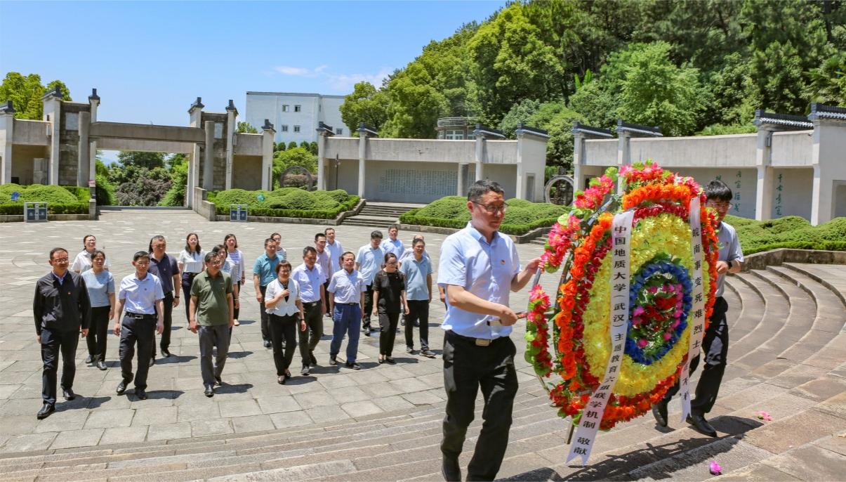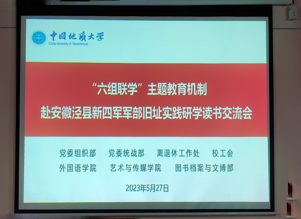 (武汉)党史校史实践研学基地”的签约仪式和揭牌仪式。在签约仪式上,馆长洪帮介绍了纪念馆的基本概况及取得的成绩,表达了对学校及其辉煌历史的由衷崇敬,对我校“六组联学”结合党史校史教育、深入当地开展主题教育实践研学活动的真诚赞赏、热烈欢迎和诚挚谢意,并表示将建大力支持基地建设。他希望学校将来利用节假日、重大纪念日等时间,组织师生到基地开展党史校史实践研学活动,接受红色教育,把新四军军部旧址纪念馆作为地大党史校史实践研学、宣传教育和思想政治教育的重要阵地。学校党委组织部长陈文武谈到,基地的建立将丰富我校党史校史研究与教育资源,要积极为引导本单位职工自觉运用唯物史观武装头脑、提升境界、推动工作发挥作用,为强化我校师生学习研究、宣传赓续党史校史的积极性和实践性作出贡献。她希望馆校双方共同建设好基地,“六组联学”充分发挥基地的作用,深入开展实践研学,提升研学实效。