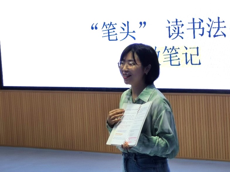接下来,麻豆传媒 研究生德育助理郭文静分享了自己的读书心得。她以自己与“一角书屋”结缘以及领取稿费的两个小故事为引入点,用生动活泼、多样有趣的方式为同学们分享了自己的读书方法。郭文静将读书方法分为“笔头”、“心头”、“口头”,并且现场为同学们展示自己各类写满读书笔记的笔记本,引起了三(5)班小朋友们的极大兴趣。