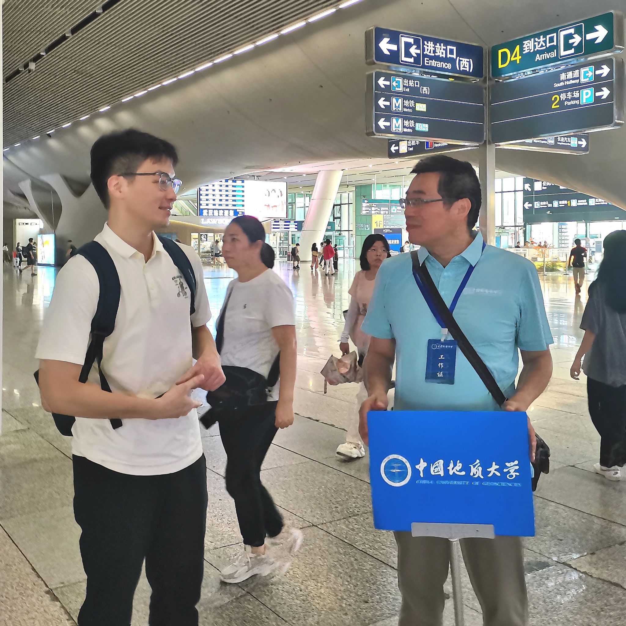 领导与教师代表提前抵达车站,化身“暖心接站员”。他们手举指引牌,热情迎接每一位新生及家长,细致解答疑问、帮忙搬运行李,用亲切的笑容与贴心的服务,将学院的第一份关怀与期许,稳稳送到新同学们的手中。