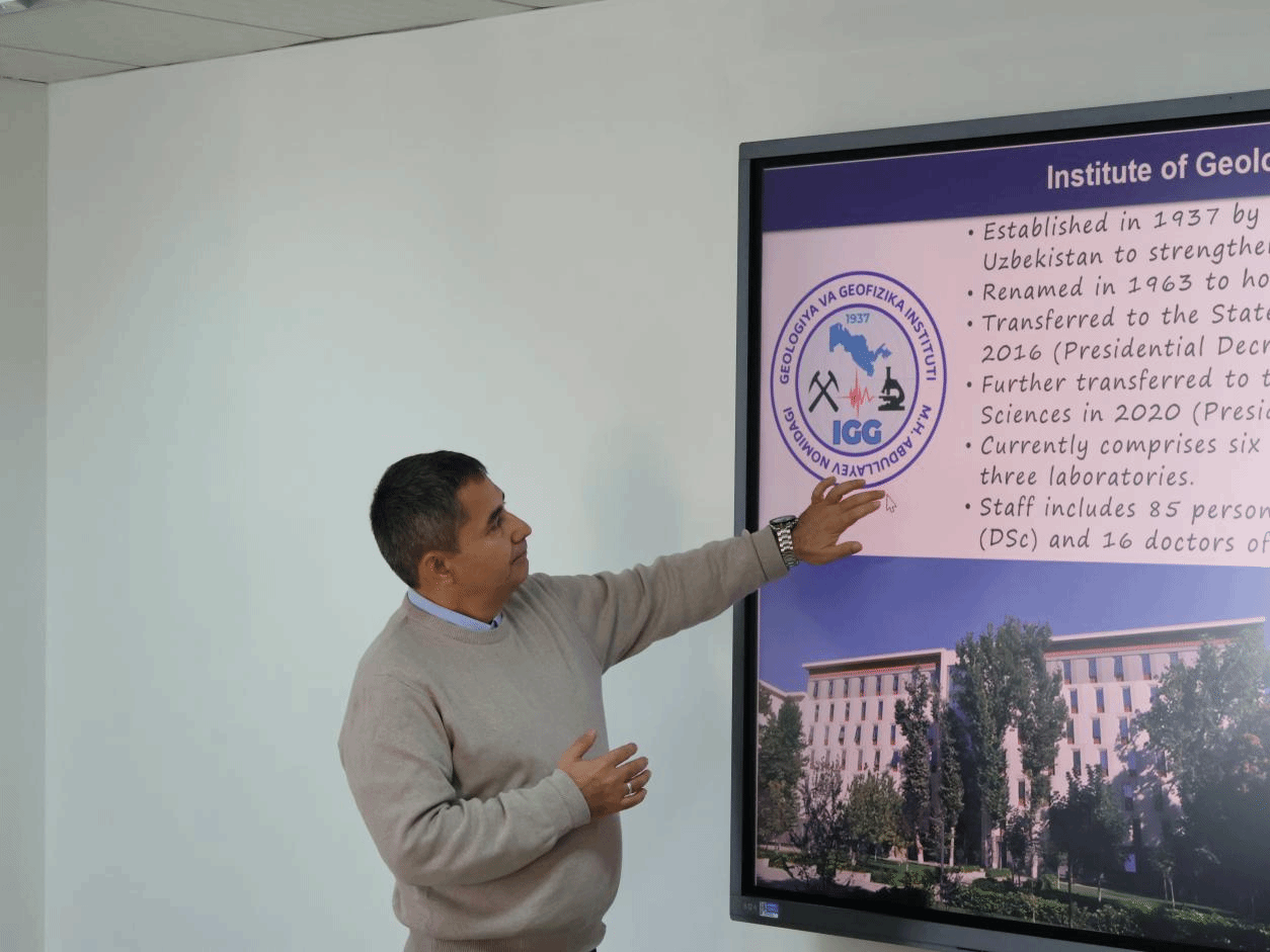 张峻峰致欢迎辞,他指出双方在绿色矿产政策与人文教育领域具有广阔的合作前景。Nosir教授表达了乌兹别克斯坦地质大学与麻豆传媒